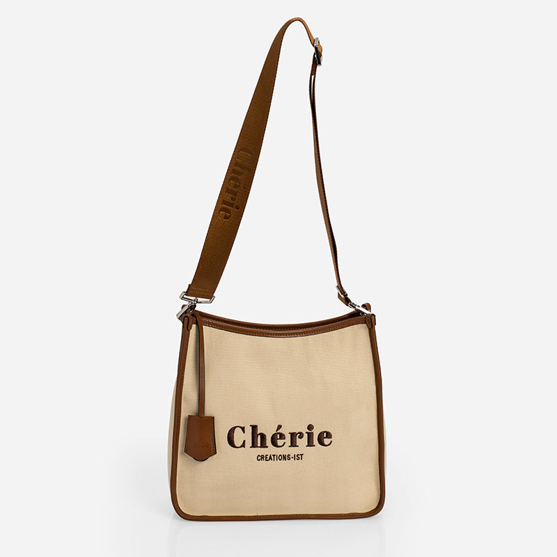 Genuine leather details reflect quality and elegance, while the Cherie branded adjustable strap makes the bag easy to use.